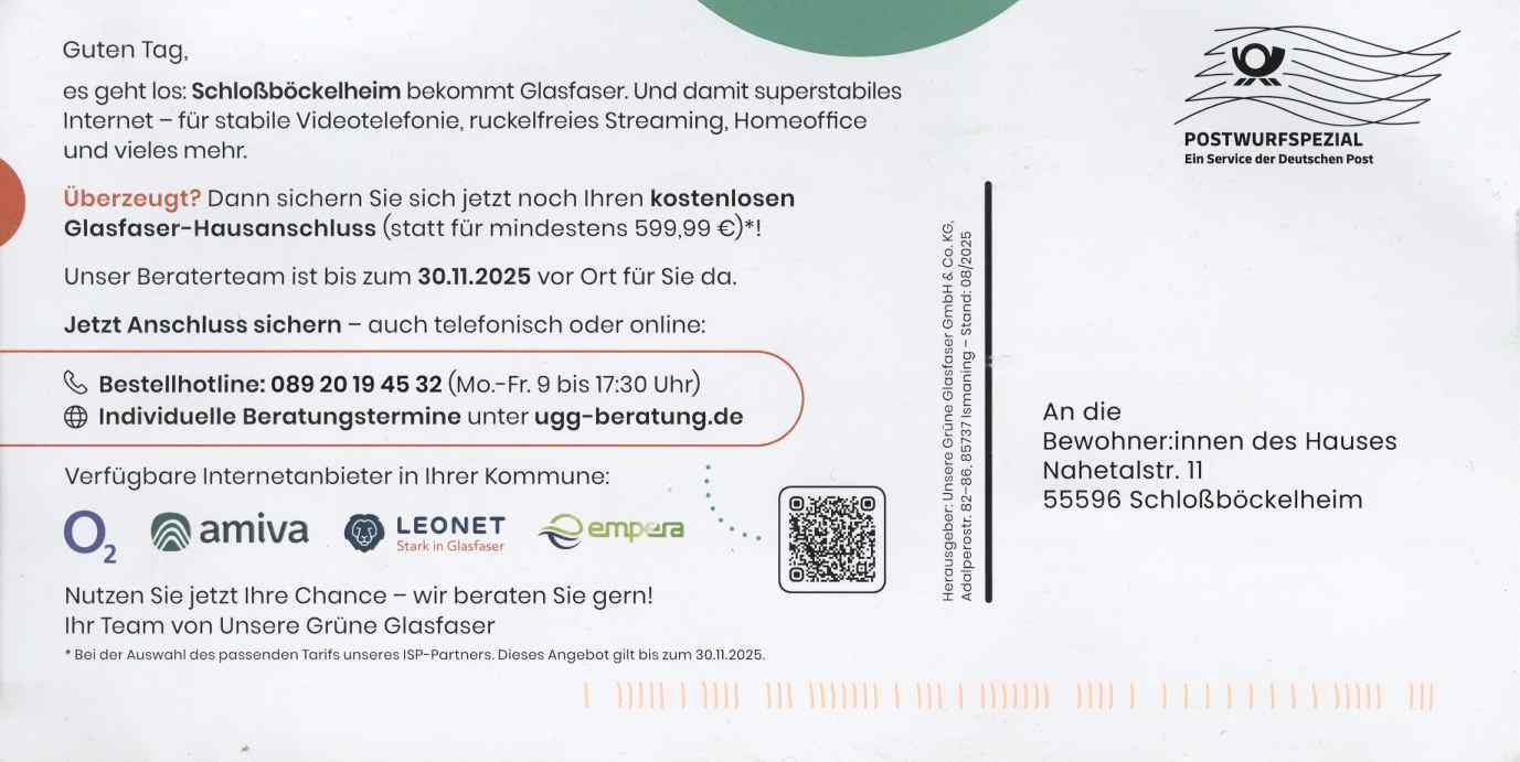 Schnelles Internet ist in der gesamten Gemeinde verlegt, die Grundschule und Kindergärten mit Gruppen ab U1 sind in unmittelbarer Nachbarschaft im ca. 3km entfernten Waldböckelheim gegeben.